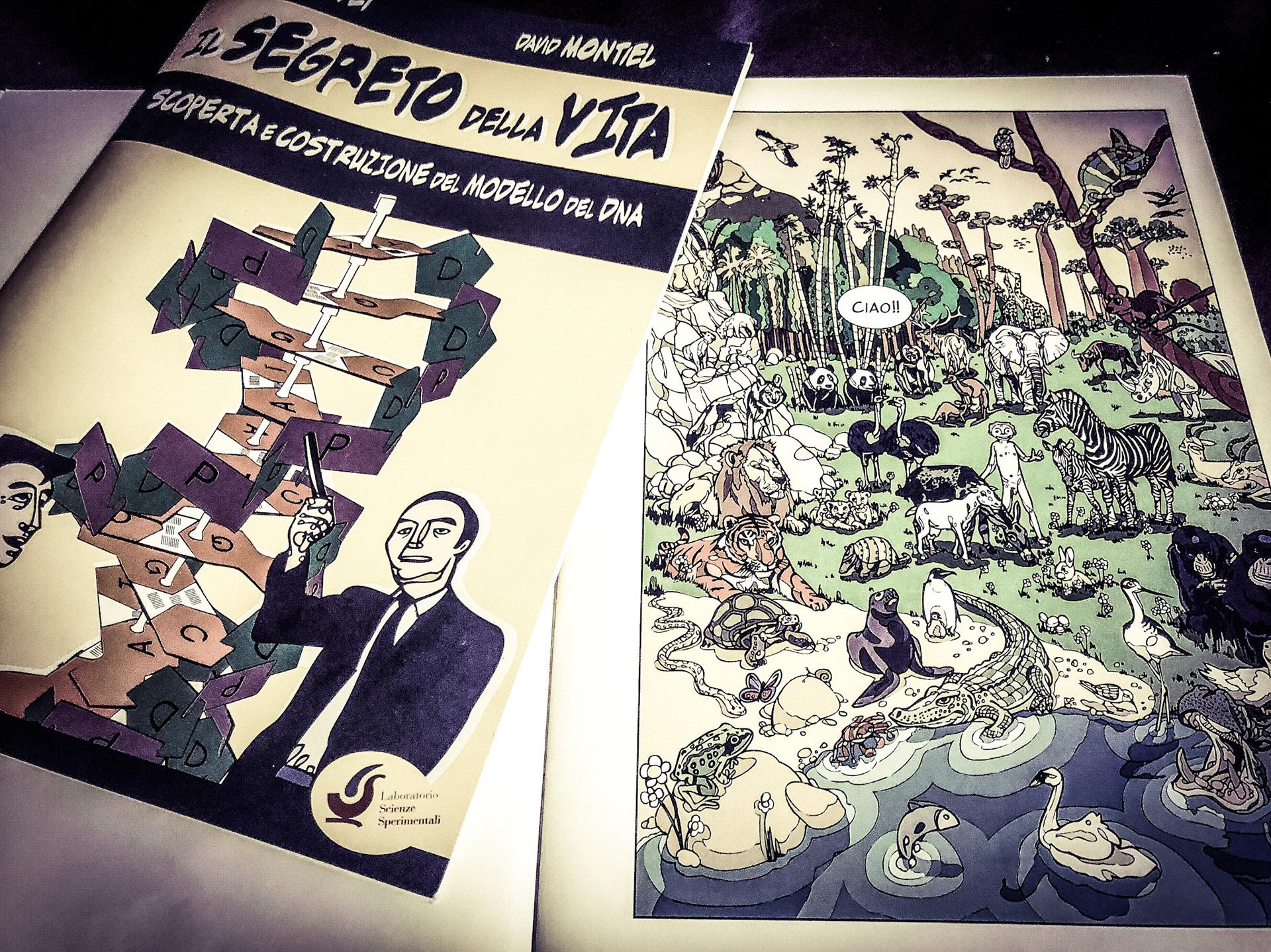 Comic in collaboration with the author of biology educational books Mario Tei, where we trace a journey through the discovery and construction of the DNA model. Printed and completed in the month of April 2010 thanks to the Experimental Science Laboratory in Foligno, Italy